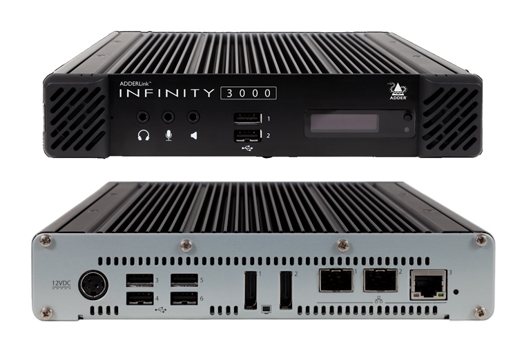 The ADDERLink™ INFINITY 3000 (ALIF3000) delivers real-time access to unlimited physical and virtual machines (VM) from a single human-machine interface (HMI). The new KVM receiver brings VM access to the multi award-winning ADDERLink INFINITY range allowing users to seamlessly and securely switch between virtual and physical machines directly from their user workstation - without the need to rip and replace existing KVM infrastructure. Built on the successful Intel® X-86 microprocessor architecture the ALIF3000 delivers pixel-perfect picture quality, audio and USB 2.0 to single or dual screens over a single 1GbE link.