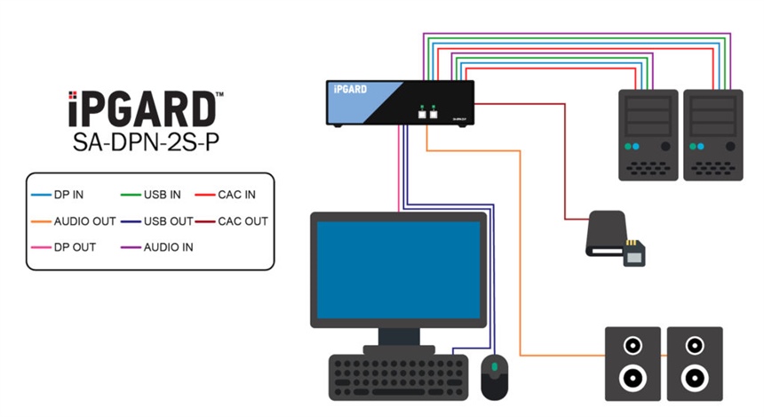 SA-DPN-2S-P - iPGARD - 2-Port, Single Screen, NIAP PP 4.0, Secure KVM Switch, DisplayPort KVM (w/audio) 4K Video SmartAVI (with CAC)