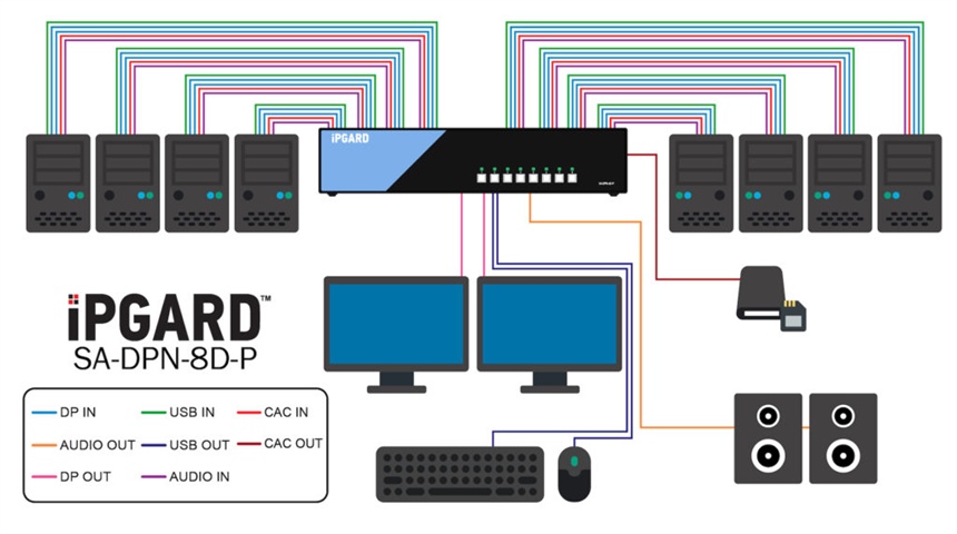 SA-DPN-8D-P - iPGARD - 8-Port, Dual Screen, NIAP PP 4.0, Secure KVM Switch, DisplayPort KVM (w/audio) 4K Video SmartAVI (with CAC)