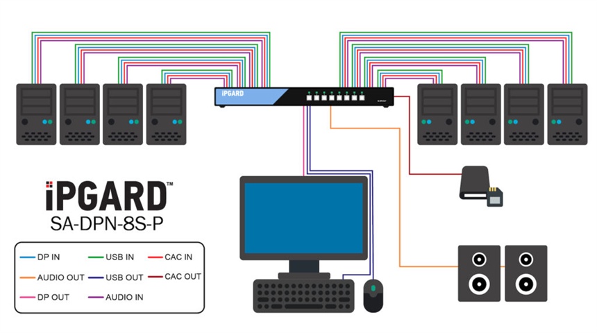 SA-DPN-8S-P - iPGARD - 2-Port, Single Screen, NIAP PP 4.0, Secure KVM Switch, DisplayPort KVM (w/audio) 4K Video SmartAVI (with CAC)