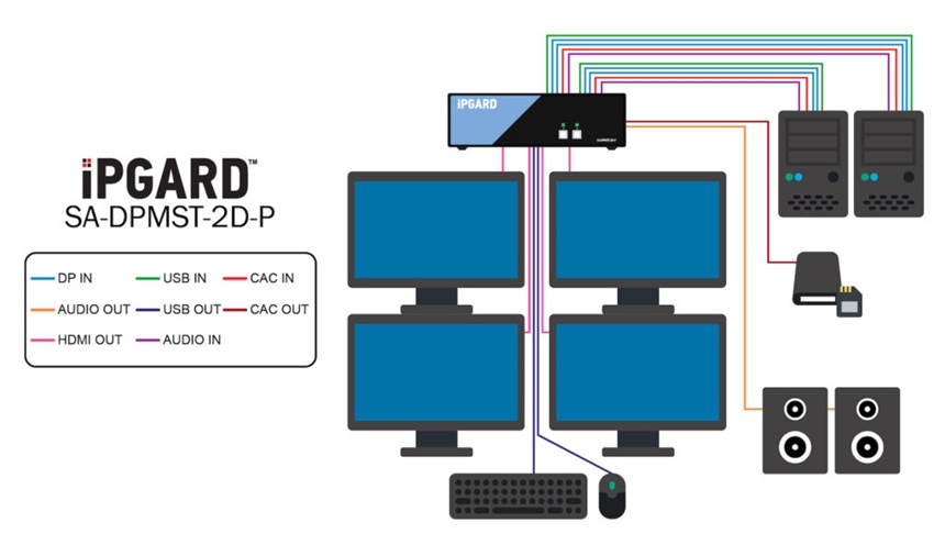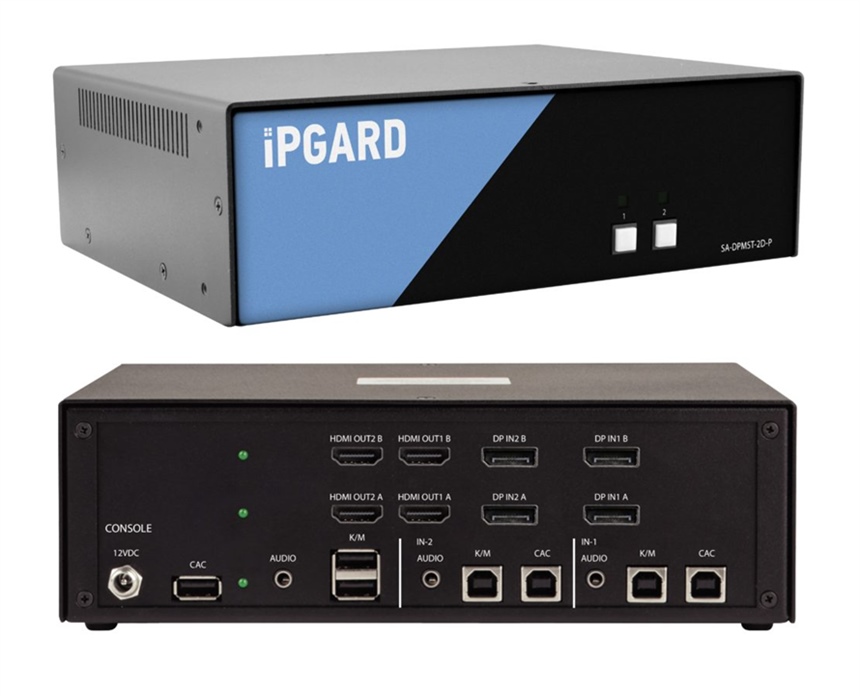 SA-DPMST-2D-P - iPGARD - 2-Port, Dual Screen, NIAP PP 4.0, Secure KVM Switch, DisplayPort to Quad-Head HDMI (w/audio) 4K Video SmartAVI, with MST (with CAC) DPMST