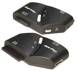 The Magic Bridge USB 2.0 to IDE/SATA and eSATA to SATA Dual Interface Adapter. Allows you to connect an existing ATA/ATAPI (IDE) or SATA interface device via USB port or SATA interface device via the eSATA port.