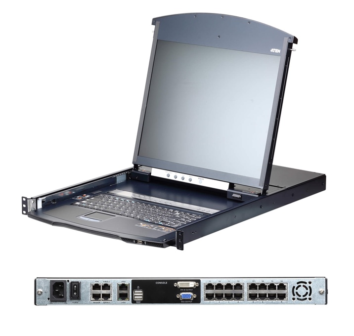 KL1116VN - ATEN - 19" 1-Local/1-Remote Access 16-Port Multi-Interface Cat 5 Dual Rail LCD KVM over IP Switch (KL1116V) ATEN LCD Console