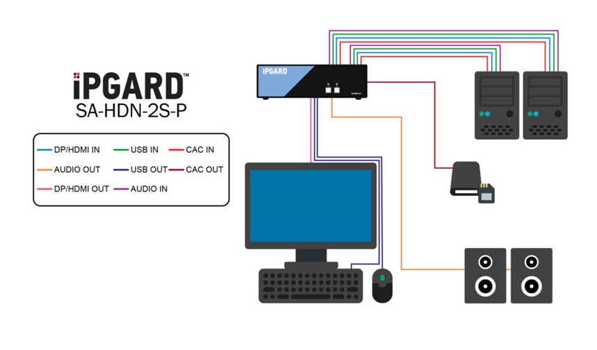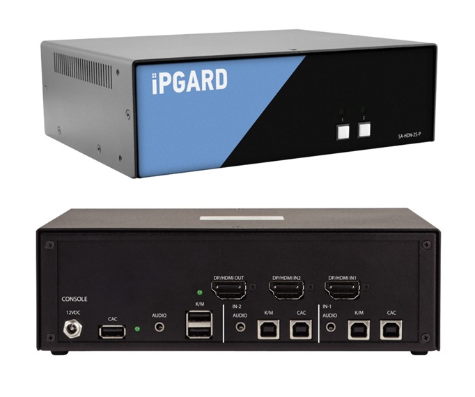 SA-HDN-2S-P - iPGARD - 2-Port, Single Screen, NIAP PP 4.0, Secure KVM Switch, DisplayPort/HDMI KVM (w/audio) 4K Video SmartAVI (with CAC)